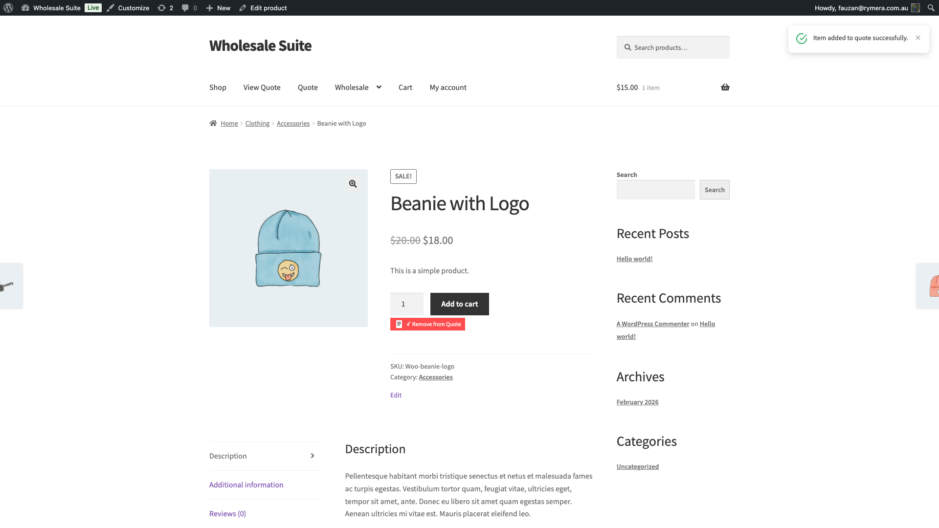 Enable guest quotesAllows visitors who are not logged in, and registered customers without a wholesale role, to submit quote requests.Disabled