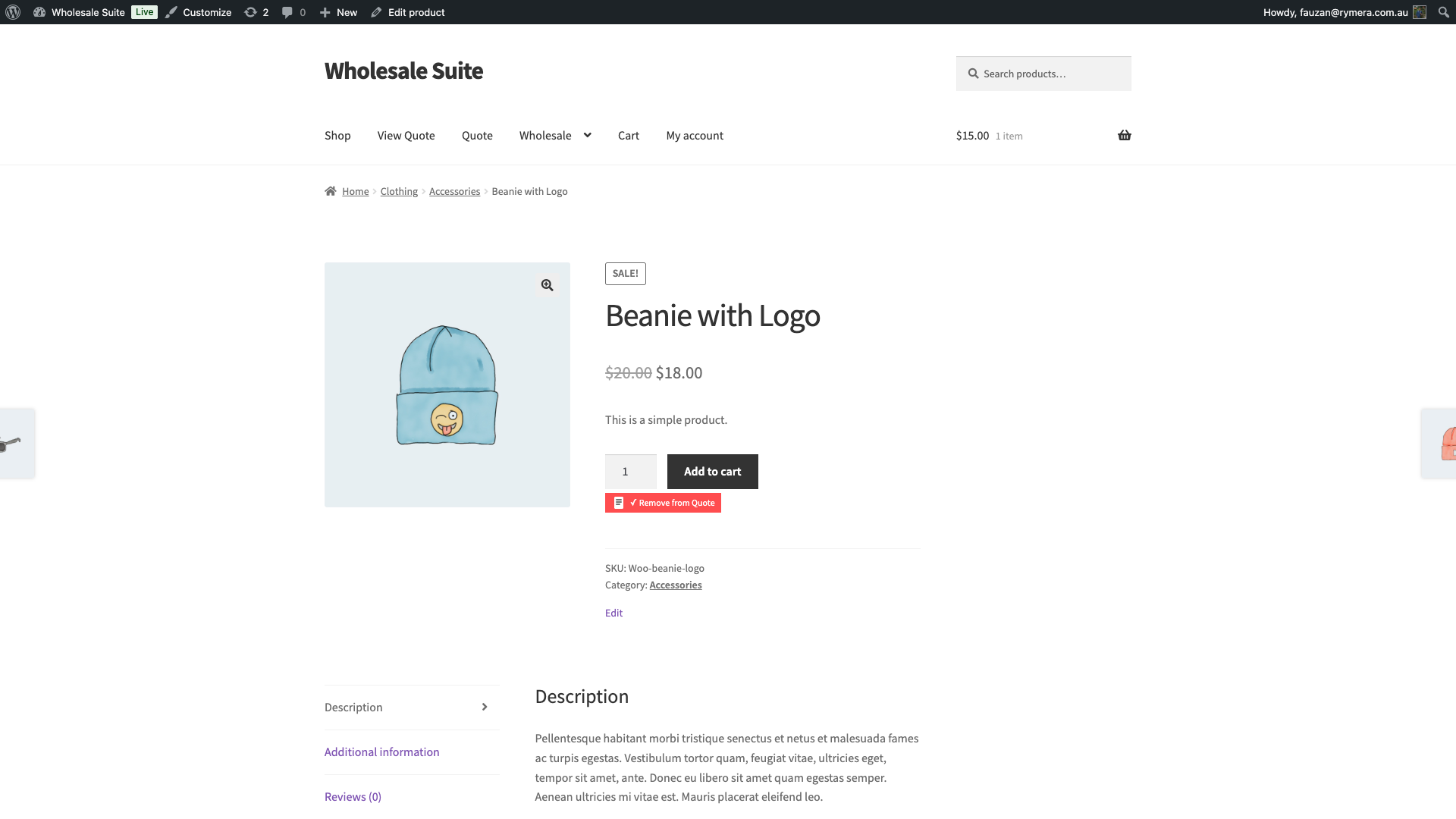 Show retail prices in quoteDisplays standard retail prices alongside wholesale prices on the quote, so customers can see the discount they’re receiving.Enabled