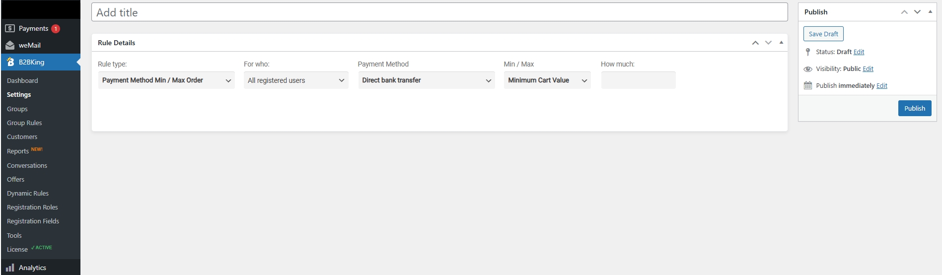 B2BKing’s free version supports group pricing. It works for simple setups where one group gets one price. The upside is quick testing. The trade-off is that complex tiers require the Pro plan. B2BKing Pro adds tiered pricing and wider rule types, which brings it closer to the bundle.